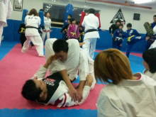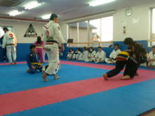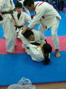 お互いの演武を見せ合った後、柔術の子は空手を、空手の子は柔術をそれ