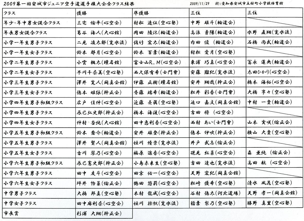 11月29日(日)、心空会主催の初の大会となる2009第1回安城市ジュ