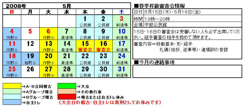 と。無断欠席をした者は、次回の昇級審査を受けること