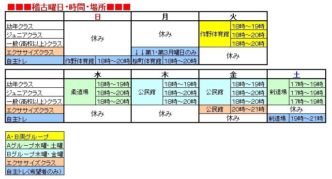 但し、当面は稽古終了後に希望者のみを対象とします。